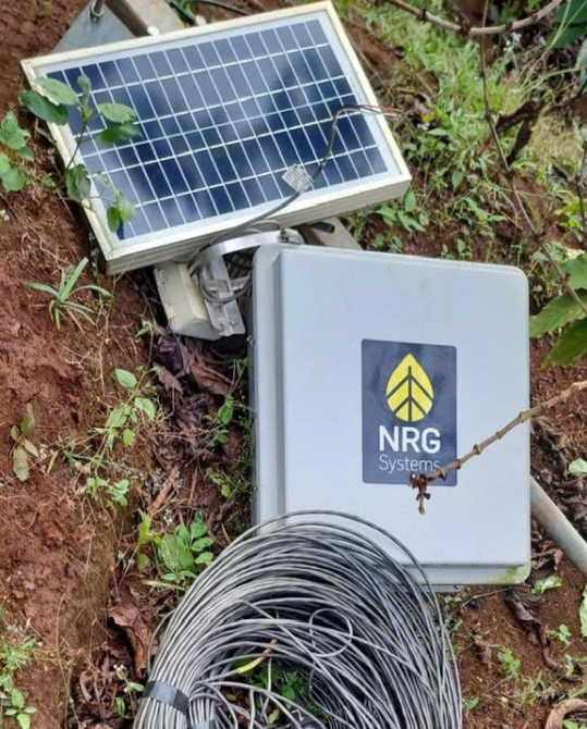 Setup of meteorological stations for wind measurement, including temperature, humidity, and pressure sensors.